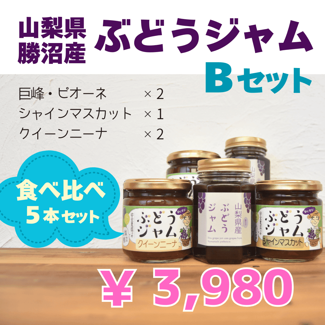 山梨県の特産品、ぶどうジャムの5本セットです。